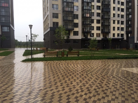 Выполнение работ по озеленение территории. В организацию зеленого благоустройства входило: вертикальная планировка, подготовка почвы под посадки и посевы, вспашка на тех участках, где нет насаждений, рыхление среди существующих насаждений, внесение органических и минеральных удобрений, разбивка территории в натуре в соответствии с проектом мест под посадку деревьев из Европы, кустарников, цветов, посев газонных трав.